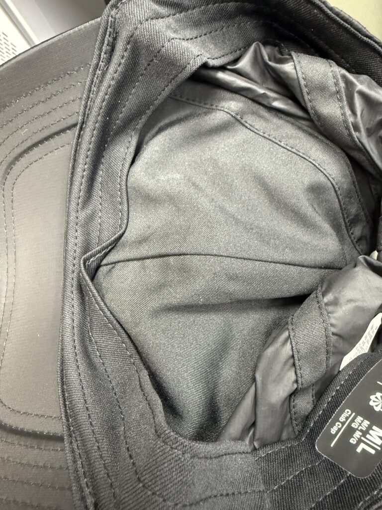 안쪽은 앞부분만 땀흡수가 될 수 있도록 하는 재질로 되어 있음