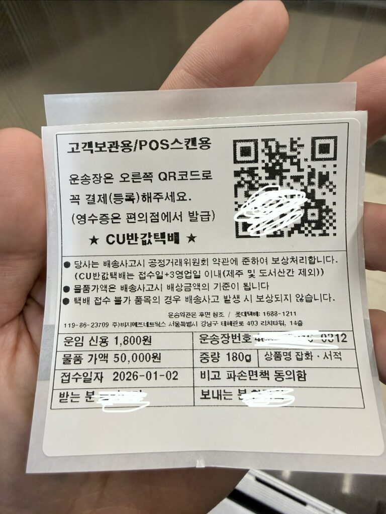 - gs 혹은 cu 선택 > 편의점으로 보낼지 원하는 주소로 보낼지 선택(반값택배는 편의점으로 보내는것)